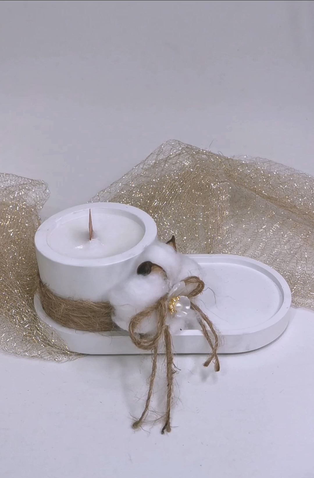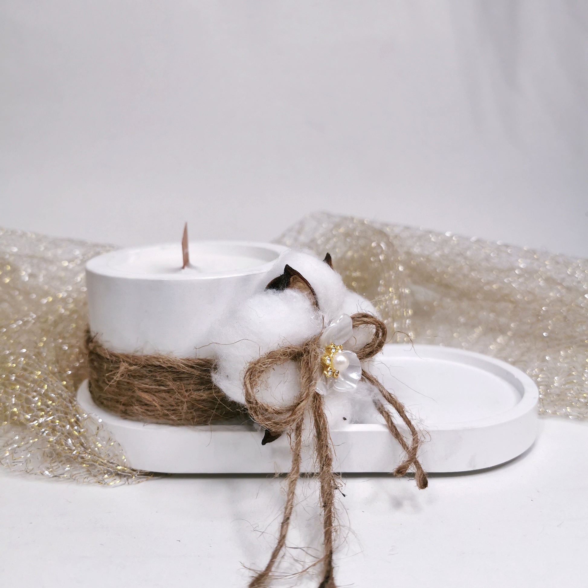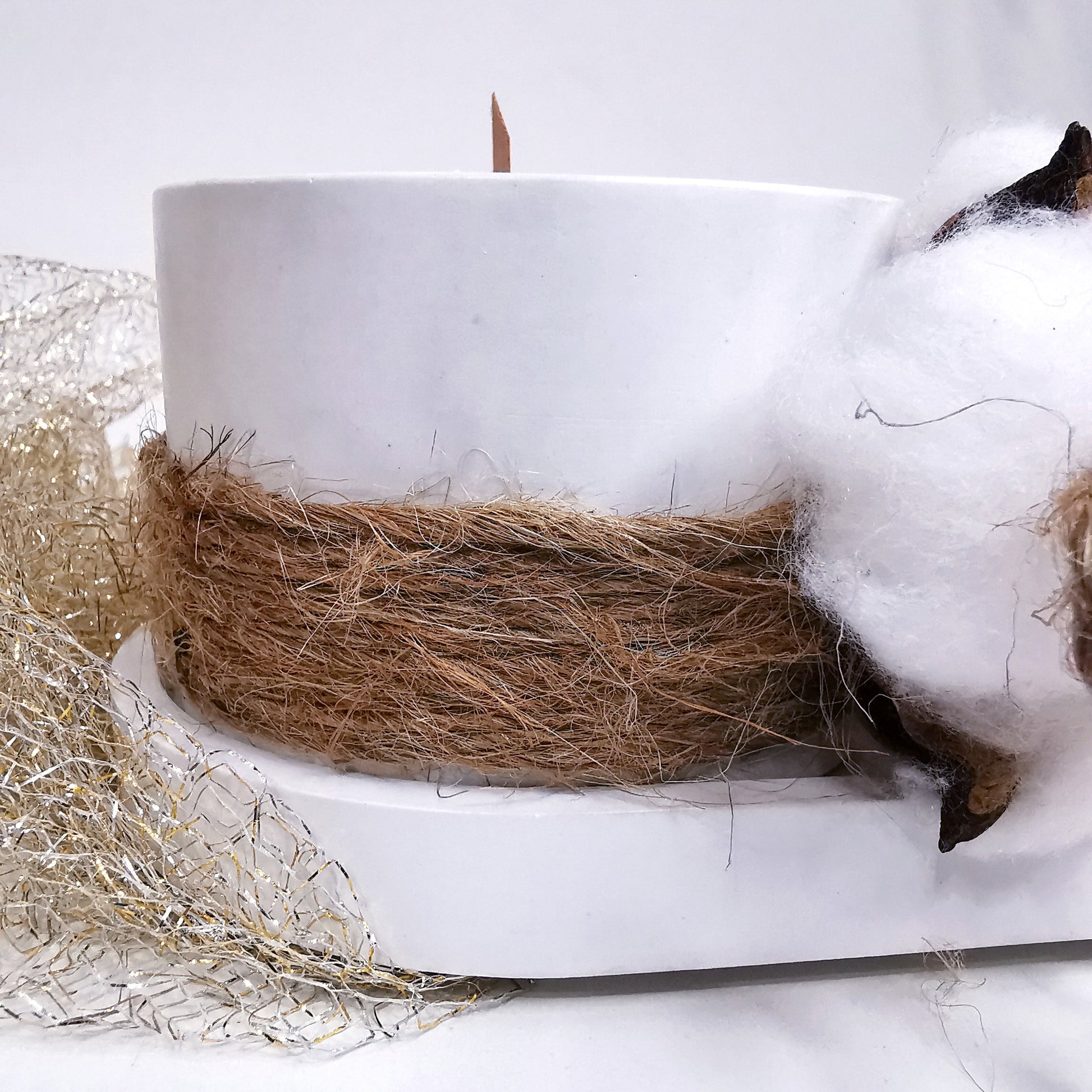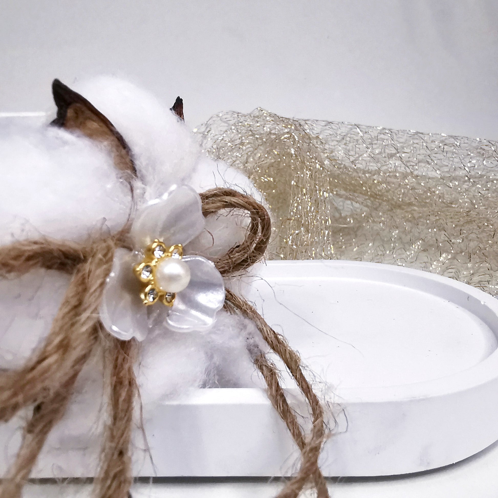 Υλικό: πορσελάνη, φυσικό βαμβάκι, φυσικό σχοινί, διακοσμητικό λουλούδι.