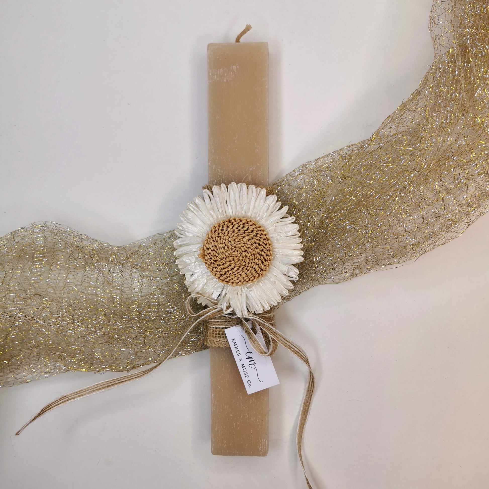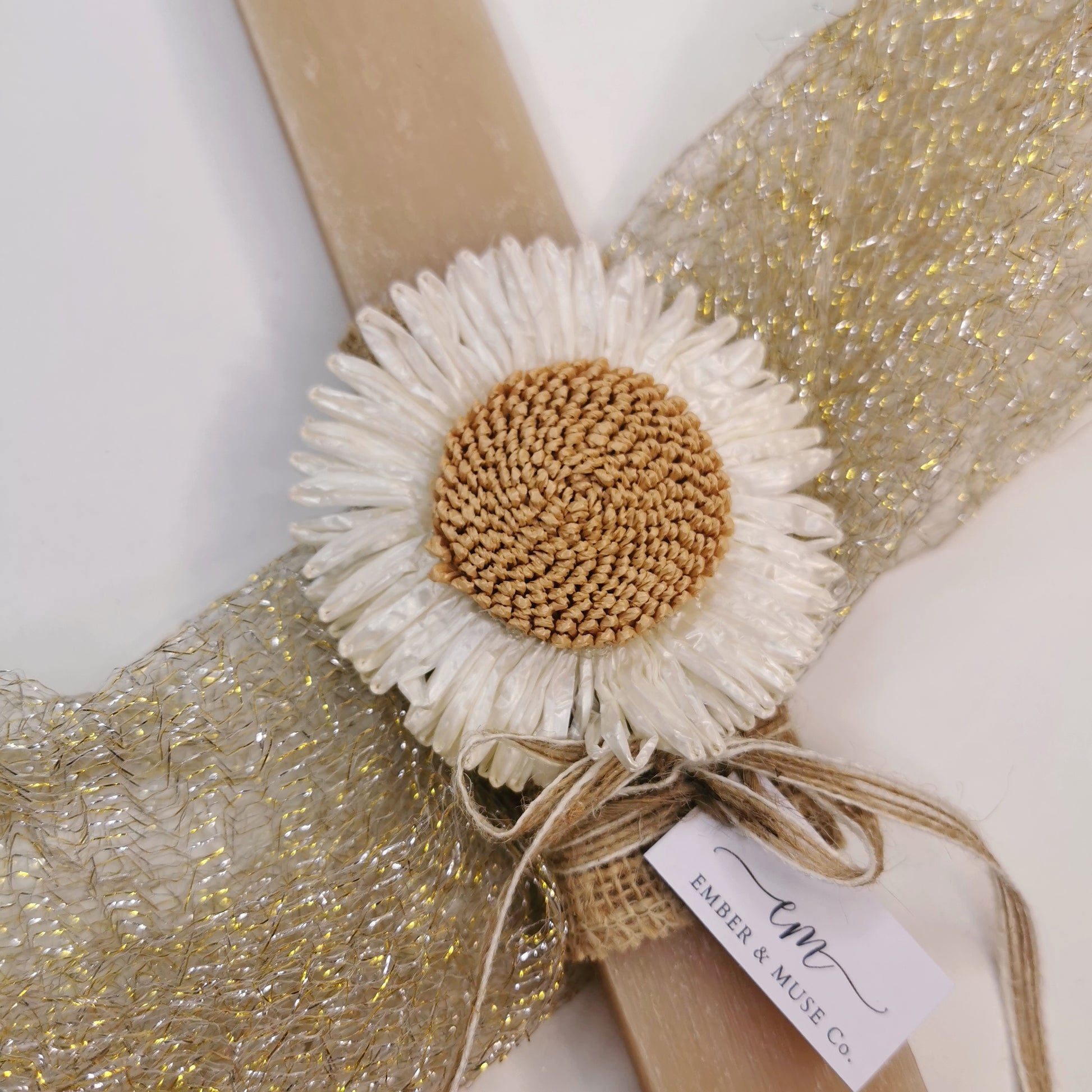 Υλικό: φυσικό σκοινί γιούτα , πλαστικό διακοσμητικό