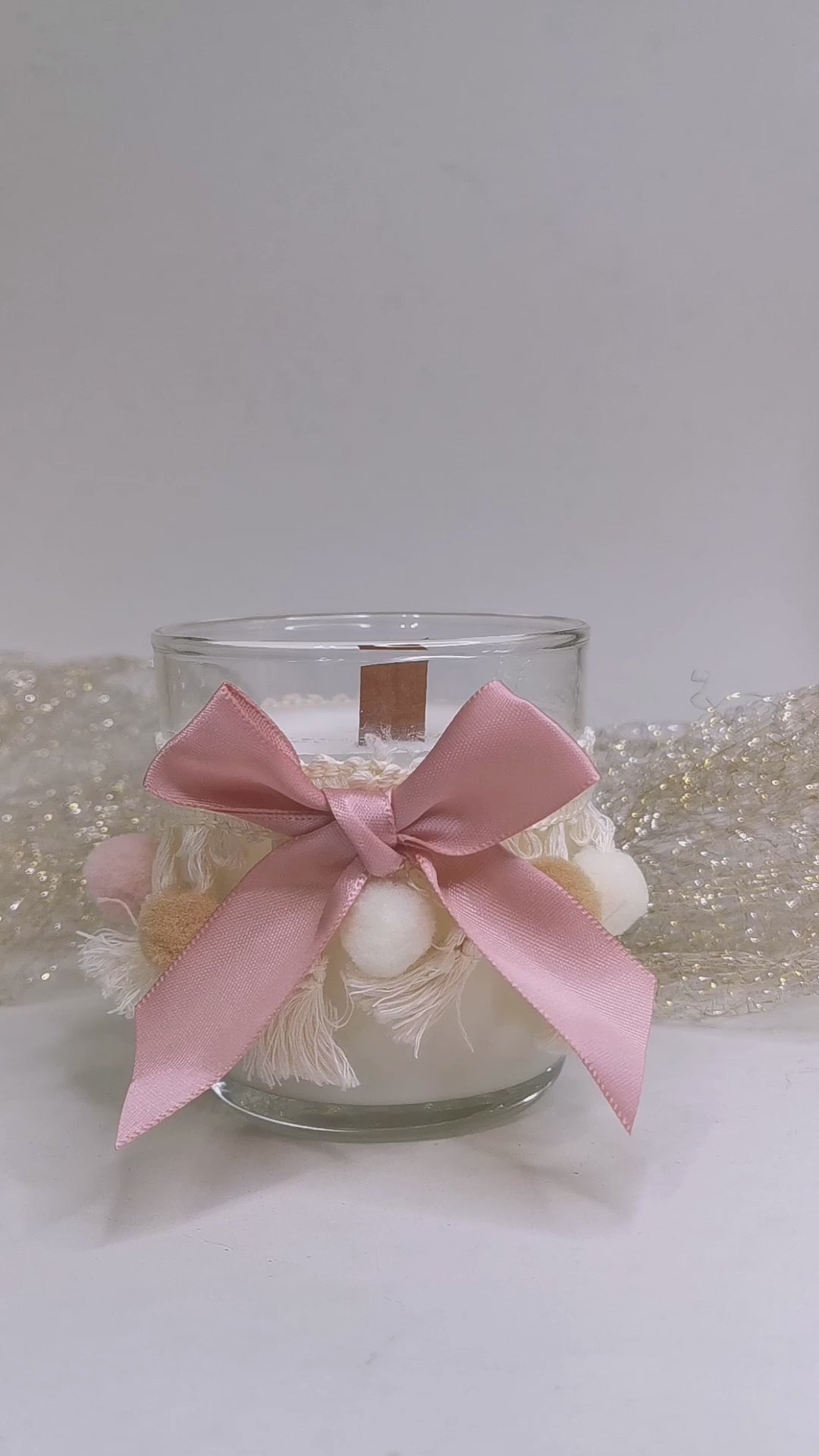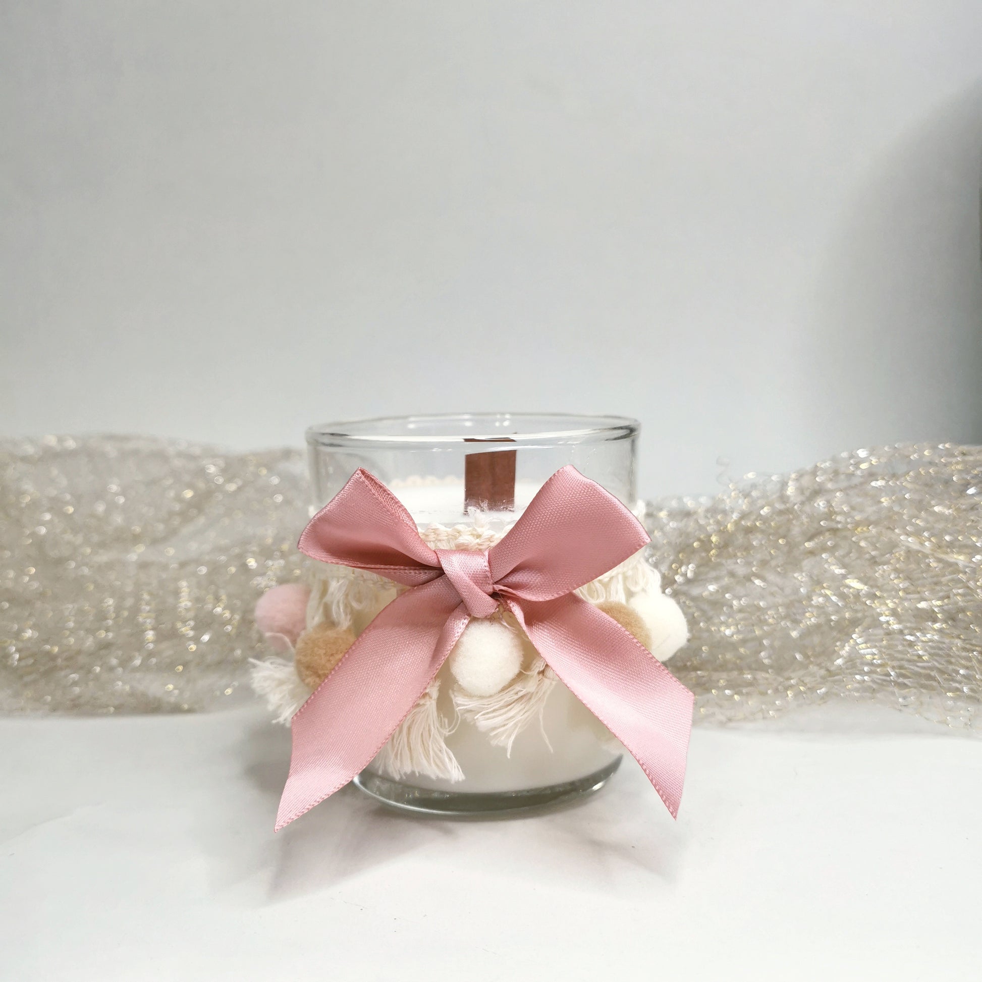 Υλικό: γυαλί, βαμβακερή τρέσα, σατέν φιόγκος