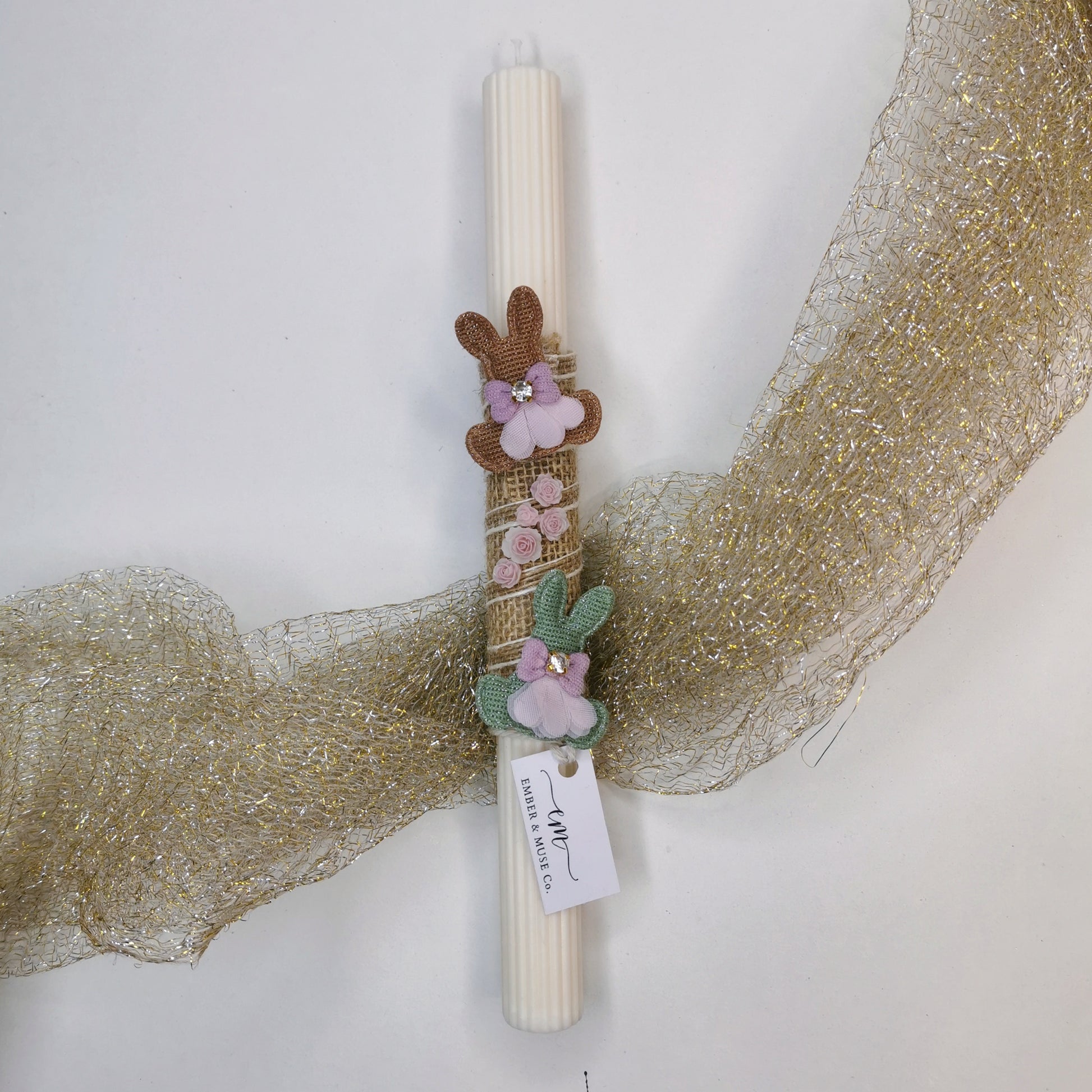 Υλικό: φυσικό σκοινί γιούτα , υφασμάτινα διακοσμητικά