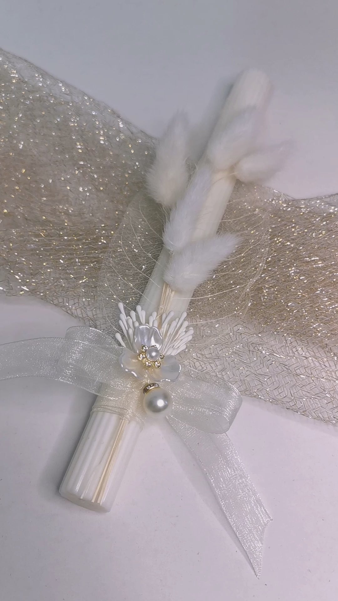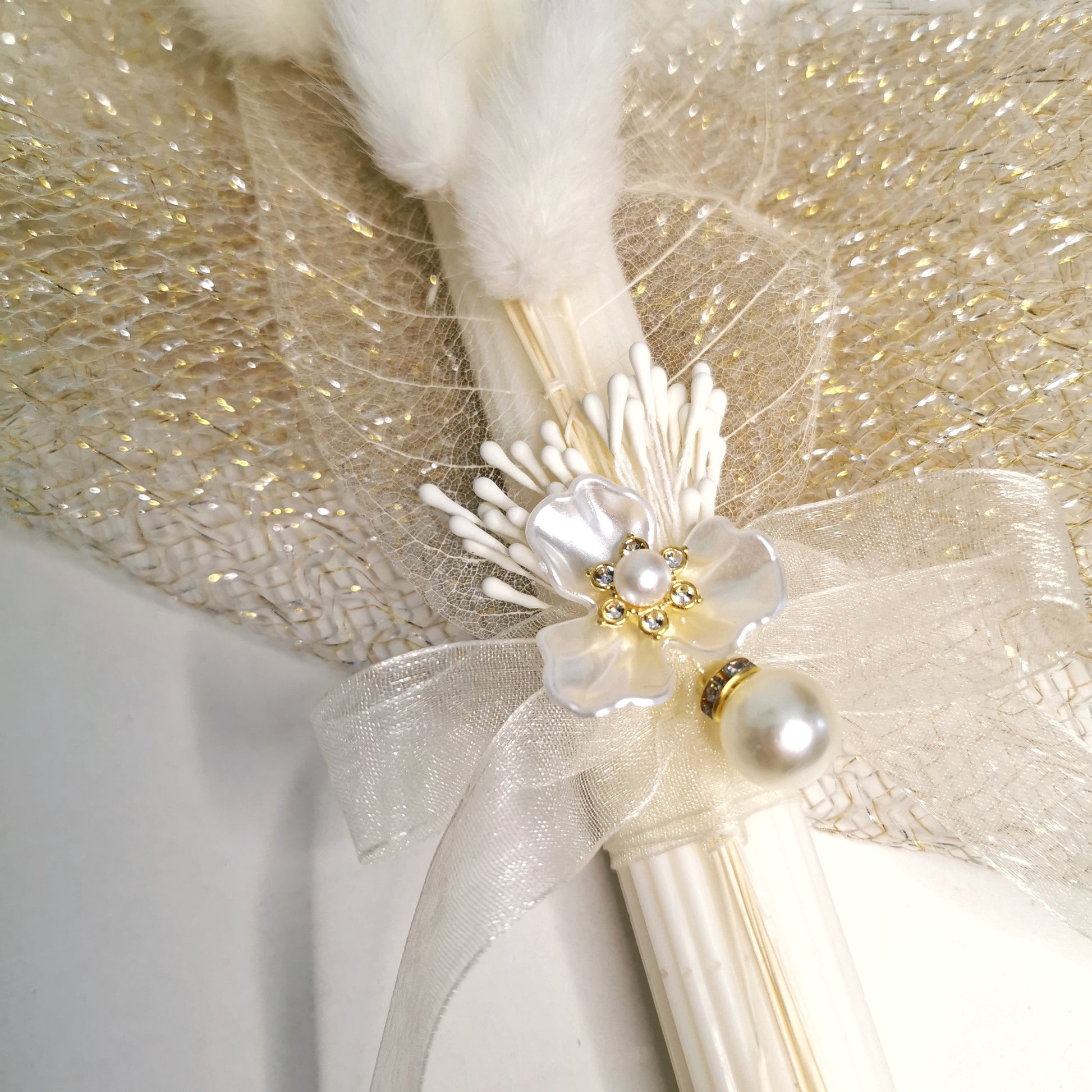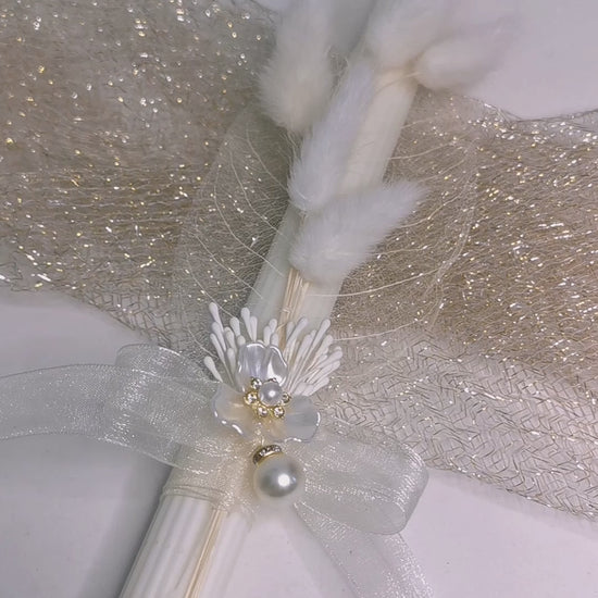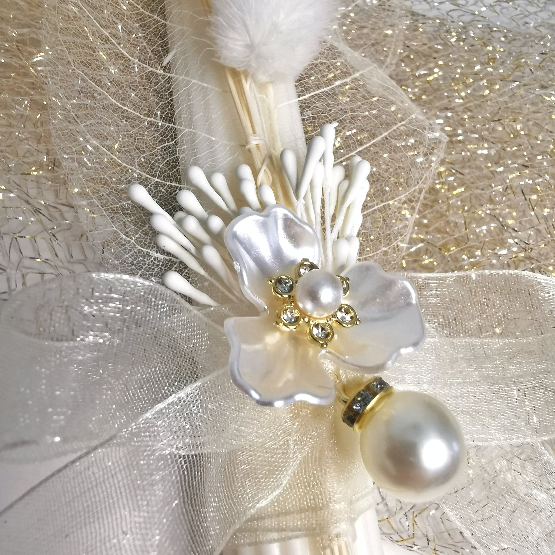 Υλικό: αποξηραμένα φυτά, πλαστικά διακοσμητικά (πέρλες).